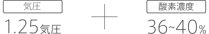石原式酸素カプセルは、石原教授の研究成果を受けて「36~40%の酸素濃度」を適切な範囲としています。この数値は実験成果をもとに安全性も考慮して独自に導き出されたものです。「1.25気圧」は心身のストレスまで配慮した安全な気圧として設定されています。また、これらの数値を自動制御して維持するための工夫がされています。